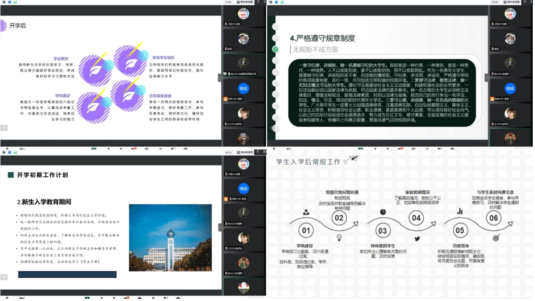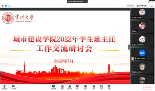 7月30日上午9:40开展了第二期培训,本次培训由辅导员程成主持,参加会议的有城建成人直播 2022级各专业辅导员及学生班主任。由2022级新生学生班主任根据制定的班级学年工作计划进行汇报交流。给水专业学生班主任徐锦辉和苏潇赞表示要在工作的实施过程中及时调整,建设出一个优秀班集体,希望让新生感受到“此生无悔入给水,来生还做常大人”。给水专业辅导员张争对两位的工作计划给予了建议,并希望两位能将计划落实到具体工作中。工程专业学生班主任刘璐和刘硕表示希望以自身之力起到表率作用,带领学生不断进步,以身作则带动专业发展。工程专业辅导员邵丹迪对两位工作计划表示认可,希望两位站在不同的角度思考解决问题,并表示“道阻且长,未来可期”。土木专业学生班主任赵梓汝和孙萌萌介绍了学生班主任的各种身份,为新生能更好、更快地融入大学生活做了充足的准备,使学生对班级有归属感,责任感,荣辱感。土木专业辅导员程成希望各位学生班主任,细致规划工作,做到“顶天立地”,构建更完美的班级。建环专业学生班主任杨如梦和苏泳文从开学前的准备,到对自身和新生的要求,详实细致,考虑全面,切实为新生提供有效的帮助。并表明计划赶不上变化,要依据实际,不断完善。建环专业辅导员李欣一对两位学生班主任的规划进行了点评,希望二位能够制定一定的量化标准,为班级建设添砖加瓦。