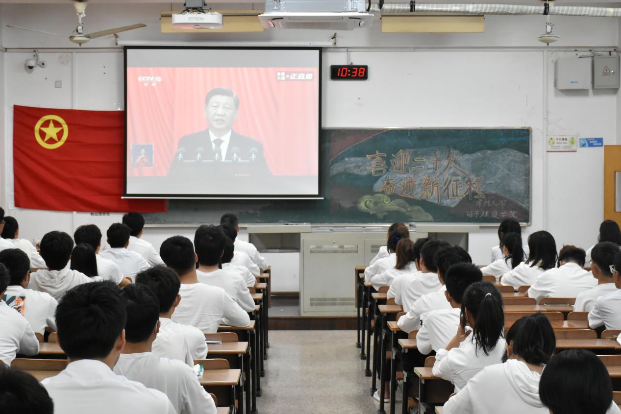 在活动现场,团员青年们佩戴团徽,认真聆听、学习习近平总书记代表十九届中央委员会向大会所做的报告。开幕式结束后,同学们纷纷表示热血沸腾,深受鼓舞;大家一致表示观看二十大直播是一个很好的契机,让青年学子们第一时间了解到了二十大的相关信息,也更直接的感受到了党和国家的巨大发展,由此也体会到了自己肩上的时代重任。