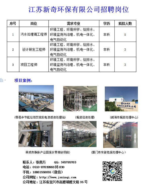 招聘[2202073] 江苏新奇环保有限公司-校园招聘