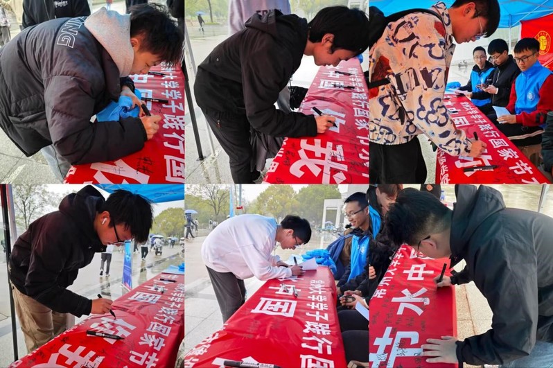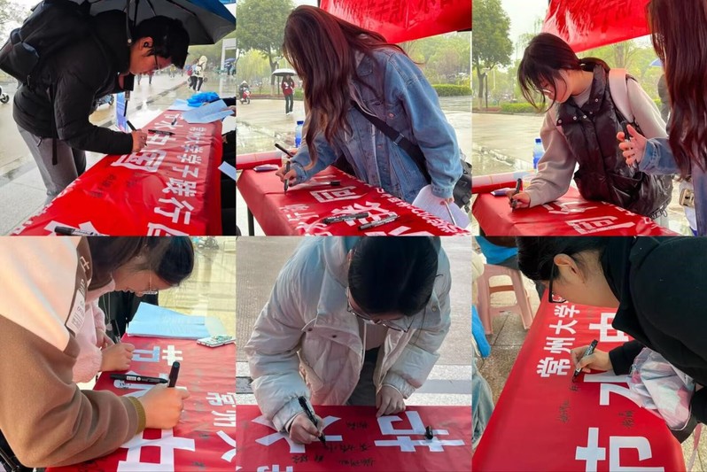 在实践活动中,城建学子们在东区明行楼张贴了精心制作的世界水日宣传海报,在水月广场向路过的师生分发节约用水的倡议书,热心细致地向广大学生介绍目前水资源利用的严峻现状,用趣味的言语宣传节约水资源、保护水生态的意义及重要性;同时,为了更好地向师生们宣传节水环保观念、获得更多师生的支持认可,城建学子在水月广场开展横幅签名活动。活动的举行为学校师生们宣传普及了节水用水、兴水护水理念,呼吁师生从生活中的一点一滴做起,树立节约用水的意识。后续,成人直播还将深入学生公寓、利用新媒体阵地等平台,持续深化节水理念的宣传。