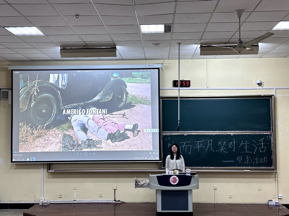 《美丽人生》讲述犹太青年奎多邂逅美丽女教师朵拉,在历经令人啼笑皆非的周折后,两人终成眷属,但是不久他们的幸福生活被战争打破。父亲奎多利用自己的想象力扯谎说他们正身处一个游戏当中,以游戏的方式让儿子乔舒亚的童心没有受到任何伤害。播放过程中,同学们认真地一边聆听,一边不断思考。