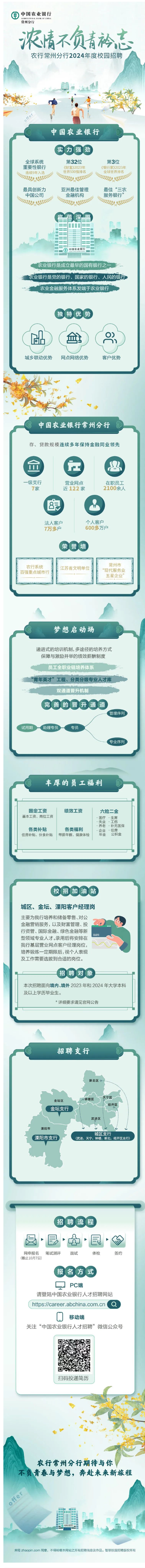 招聘[2024013]中国农业银行常州分行2024年度校园招聘正式启动