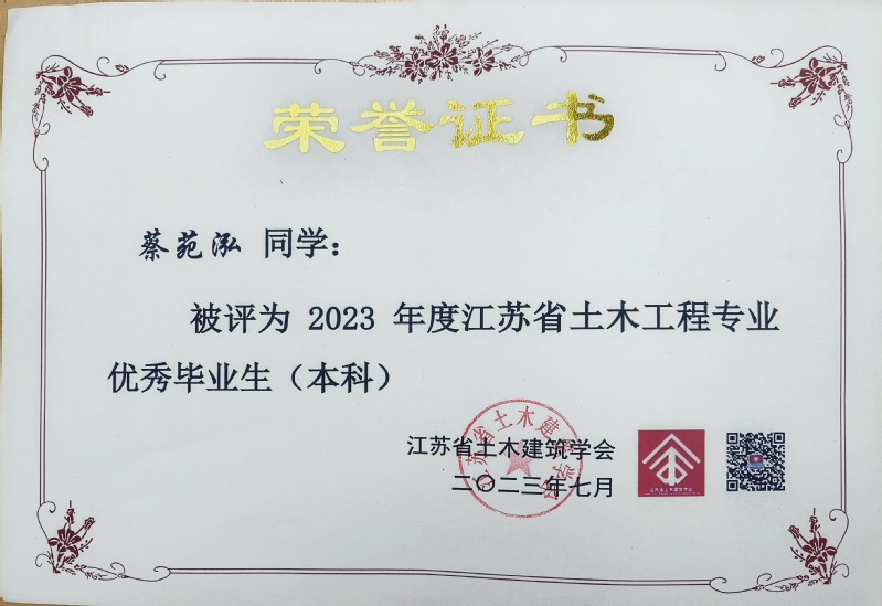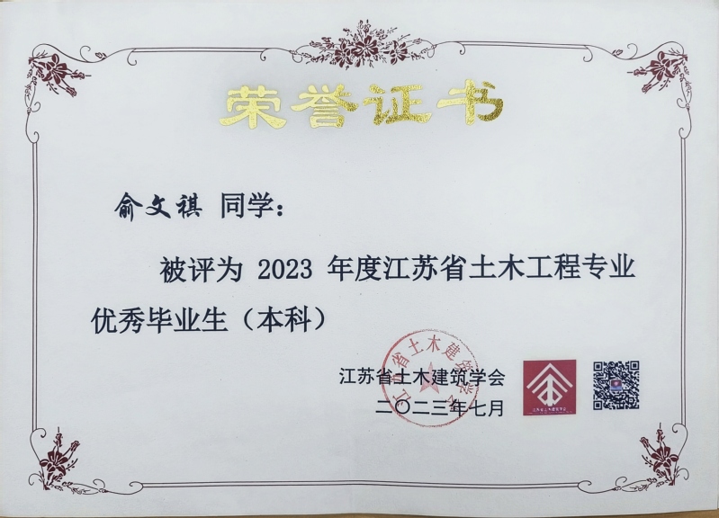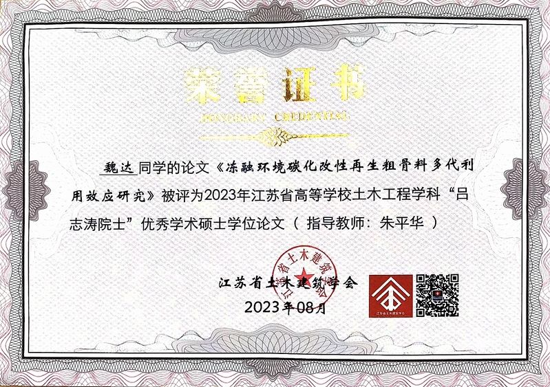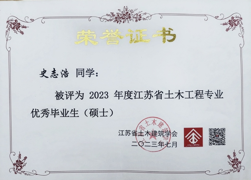 近日,从江苏省土木建筑学会传来喜讯,成人直播 2023届本科毕业生土木工程专业俞文祺、蔡苑泓获评“2023年度江苏省土木工程专业优秀毕业生(本科)”,工程管理专业陈一诺获评“2023届江苏省大学生工程管理专业优秀毕业生”,硕士毕业生史志浩获评“2023年度江苏省土木工程专业优秀毕业生(硕士)”。硕士毕业生魏达的毕业论文《冻融环境碳化改性再生粗骨料多代利用效应研究》(指导教师:朱平华)被评为“2023年江苏省高等学校土木工程学科‘吕志涛院士’优秀学术硕士学位论文”。