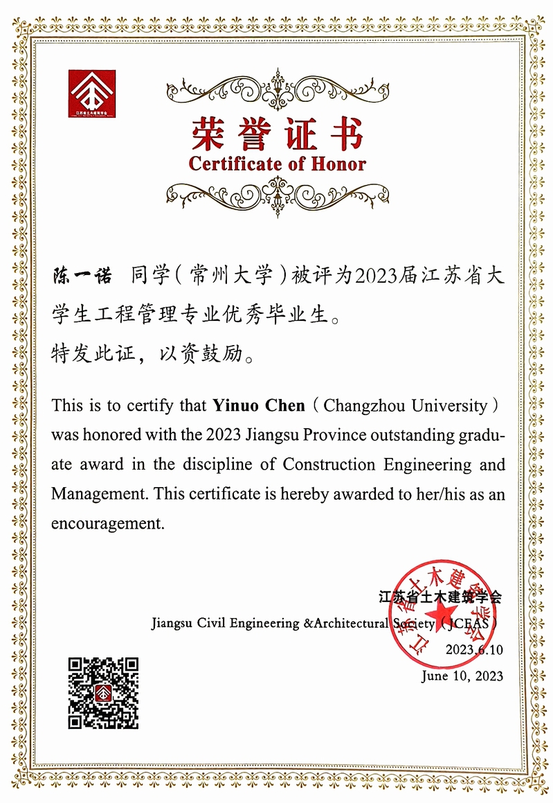 据悉“江苏省土木工程专业优秀毕业生、江苏省工程管理专业优秀毕业生”是由江苏省土木建筑学会组织评选,评选包含江苏省内各高校推荐、江苏省土木建筑学会土木工程专业委员会和建筑与房地产专业委员会初步审查、主任委员核查,江苏省土木建筑学会确认和评选公示等环节。江苏省高等学校土木工程学科“吕志涛院士”优秀硕士学位论文评选是为了响应世界一流大学和一流学科建设,激发江苏省高等学校土木工程学科学术科研创新能力,激励研究生潜心学术、刻苦专研、追求卓越,鼓励研究生指导教师树立精品意识,不断提高研究生创新能力、学术水平及学位论文质量而设立,在行业内具有较高知名度和影响力。