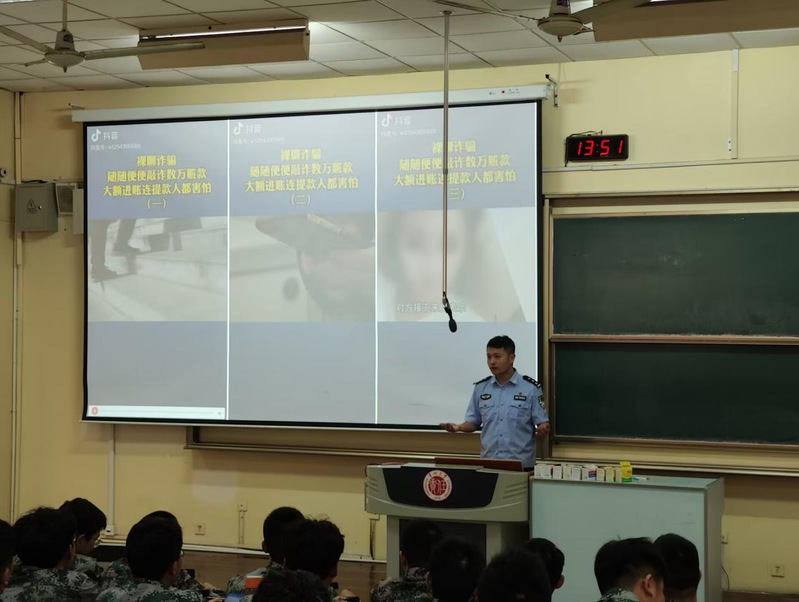 同学们依次有序落座后,何警官首先指导同学们注册“反诈神器”金钟罩APP,并用通俗易懂的语言、惊人的数字讲解最近的新型网络诈骗案例。其中,何警官特别指出,诈骗的方法主要有:虚假好友或领导骗取信任诈骗,网络兼职诈骗,贷款诈骗,冒充公检法诈骗,冒充客服诈骗,网络交友诈骗、裸聊敲诈,购买出售游戏装备或账号诈骗,进而让同学们提高警惕,辨明电信诈骗类型,严防诈骗。