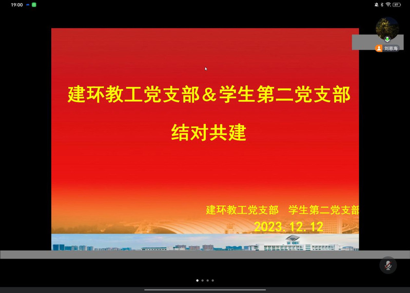 围绕学校“十四五”规划和高水平大学建设目标,落实第三次党代会的精神,建环教工党支部与学生第二党支部于2023年12月12日开展线上结对共建启动仪式,活动由建环教工党支部书记刘恩海主持,建环教工党支部及学生第二党支部全体党员参加。
