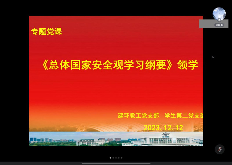 随后,成人直播 院长助理、建环教工党支部副书记周年勇领学《总体国家安全观学习纲要》中的相关内容,并分享学习心得;随后就创新创业竞赛对学生党员展开指导,强调参加创新创业比赛的重要性,他希望教师党员要大力弘扬“大手拉小手”红色双创精神,为党育人、为国育才,引导青年学生将个人追求同国家发展紧密结合,将创新创业梦融入中华民族伟大复兴的中国梦,在科创实践的大舞台争做先锋、勇当闯将。
