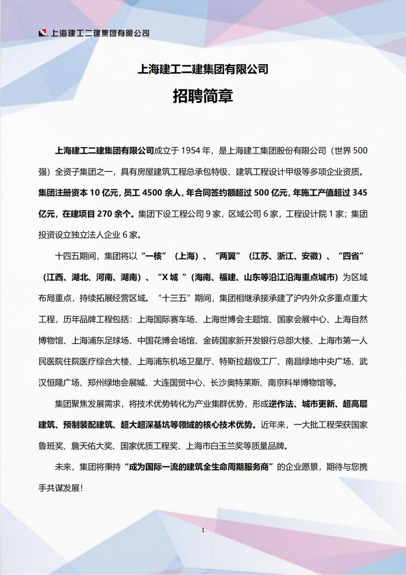 招聘[2024070]上海建工二建集团有限公司2024春季招聘简章