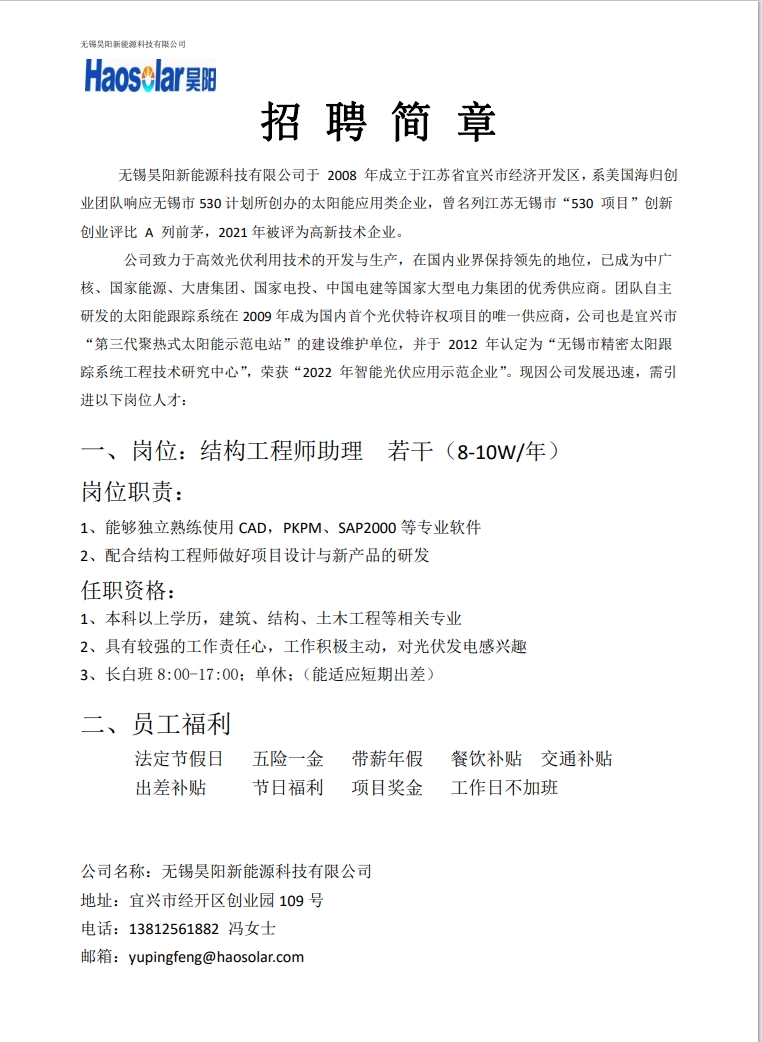 招聘[2024081]无锡昊阳新能源科技有限公司2024校园招聘简章