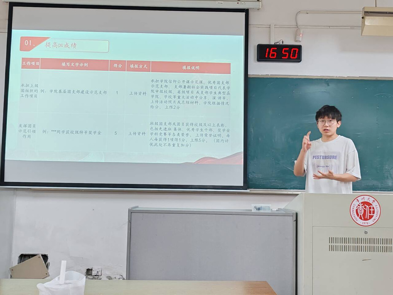 团委副书记唐才知总结了前一阶段团推优工作中存在的不足,强调发现问题要及时解决。其次,详细介绍了“先进团支部”“优秀团干部”等相关奖项的评选范围、评选重点、评选要求。要求团干部认真履行职责,积极参与各项评选,发挥好团员示范引领作用。