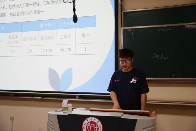 分享会上,给水201谢文耀强调了备考四六级对考研的重要性,要不断丰富英语阅读能力;建环201李双耘提醒选择备考院校时可以结合个人的兴趣、能力、地理位置等方面综合考究;土木202孔明豪具体分析了各大院校和专业排名,建议在择校时要根据自身条件进行筛选,不要盲目追求学校排名;工程201马茜茜告诫大一做好大学阶段性规划,保持高效前行。
