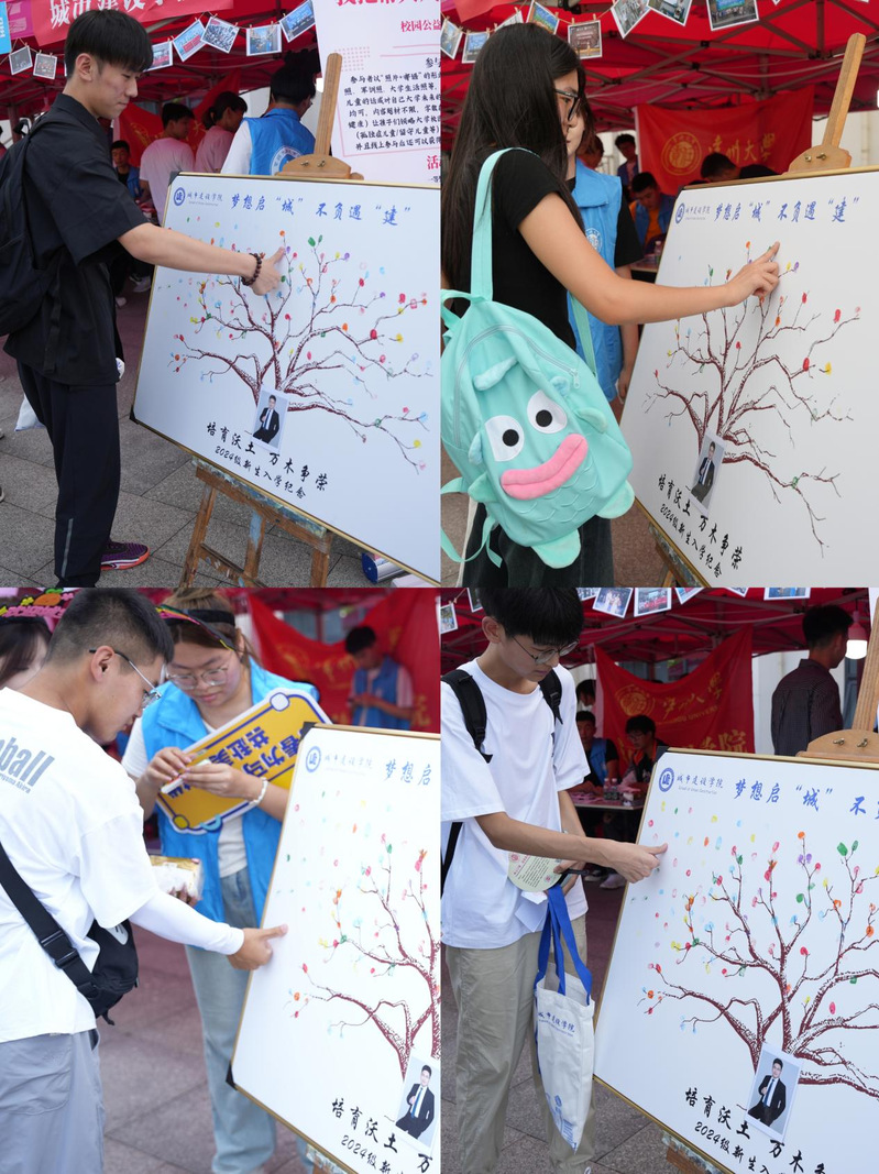 设计用心。城市建设,建立于土与木的画卷之上。根据这一灵感,成人直播 特地设计了由沃土和树木枝干为主体的立牌,新生们的指纹将化作多彩的树叶“生长”在树木之上。与此同时,在成人直播 的留影纪念墙上,新生们的名字被拼凑起来,组成了“梦想启‘城’ 不负遇‘建’”的标语。在按压指纹和拍照留念的过程中,同学们的幸福感和归属感被激发了出来,深深感受到城建大家庭的团结和温暖。