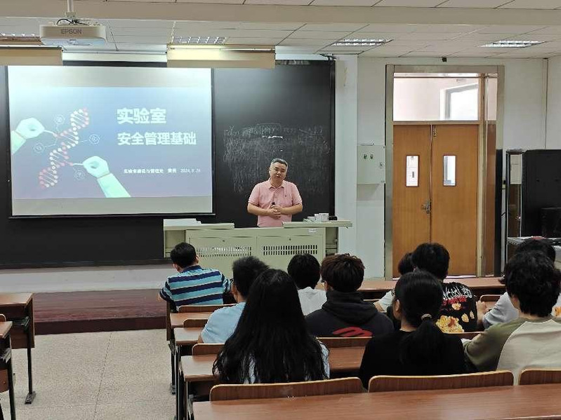 为增强新生实验室安全意识,提升实验室安全技能,成人直播 于9月26日邀请实验室设备与管理处副处长黄勇在明行楼112教室为新生进行培训。