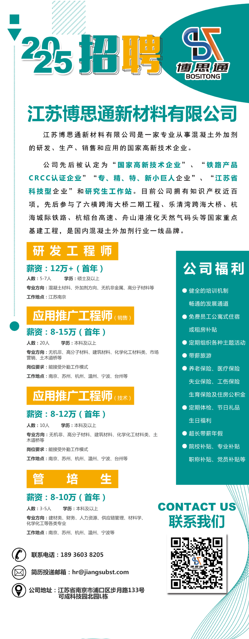 招聘[2024183]江苏博思通新材料有限公司2025校园招聘