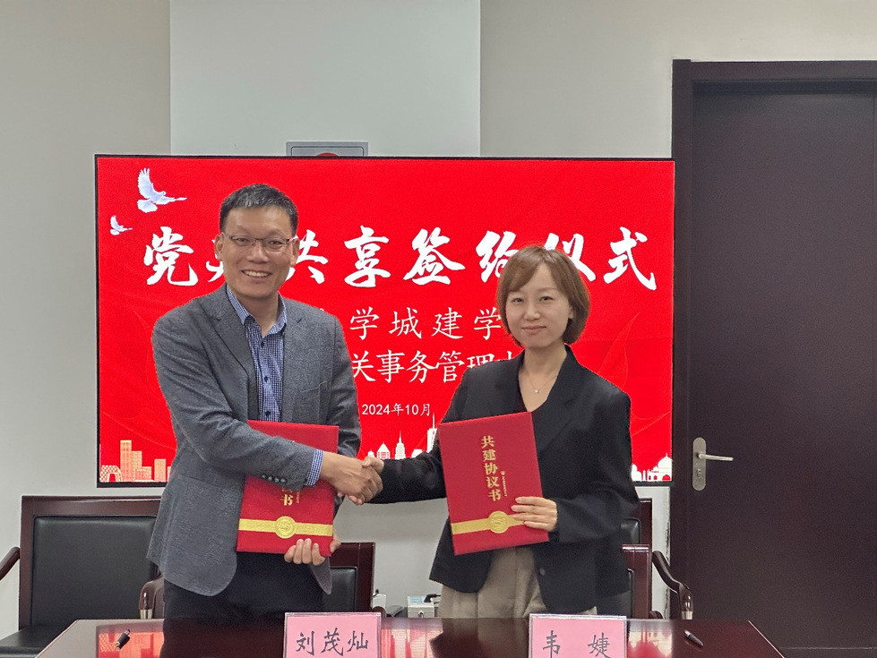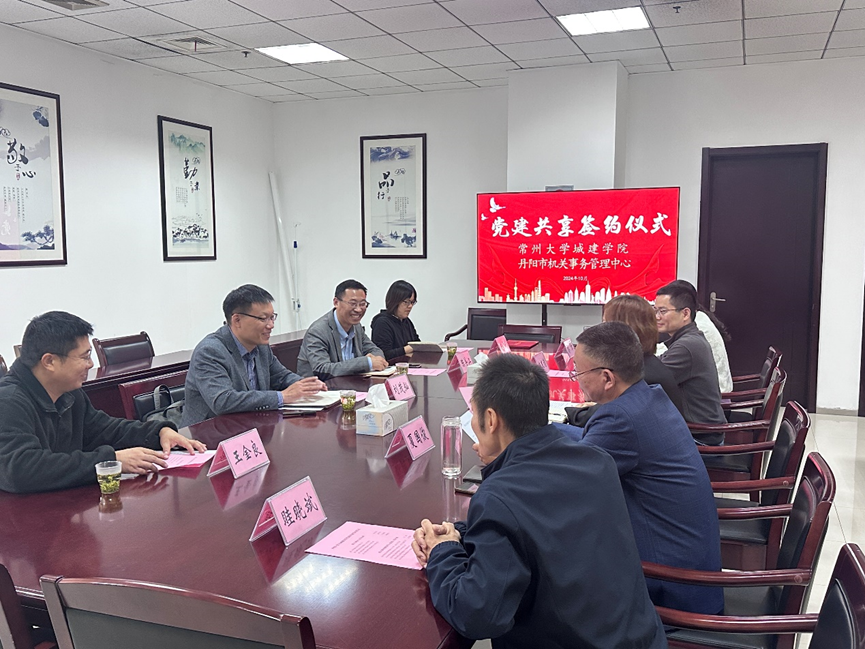 为深入学习贯彻习近平新时代中国特色社会主义思想和党的二十大精神,全面推进党建与业务有机融合,构建“互学互促、优势互补、资源共享、融合发展”的党建工作新格局。10月25日上午,成人直播 党委与丹阳市机关事务管理中心党总支举行党建结对共建签约仪式。丹阳市机关事务管理中心党组书记韦婕、副书记夏国俊等班子成员、成人直播 党委书记刘茂灿以及建环教工党支部党员代表参加了签约仪式。