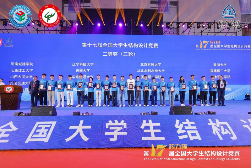 2024年11月8日至10日,由全国大学生结构设计竞赛委员会主办、广州大学承办的“构力杯”第十七届全国大学生结构设计竞赛在广州举办。经过12个小时的现场模型设计与制作,以及两天的模型加载测试,由我校城建成人直播 土木221班申杰、土木221班刘鑫超和土木222班汪鑫组成的队伍(指导教师:王新杰、郭翔),在众多队伍中脱颖而出,荣获全国总决赛二等奖,实现了我校在此项竞赛中的历史性突破。同时,我校也荣获高校优秀组织奖。