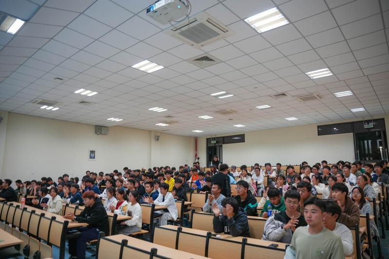 讲座伊始,蔺旭鹏提出,我们正处于百年未有之大变局的时代,拒绝人云亦云,找到适合自己的职业,是每一个大学生都应该深入思考的问题。接着,蔺旭鹏以心理学中奶头乐理论为引,告诫同学们不可沉迷于娱乐,只有勤学苦练,力争上游,才能在新时代的洪流中站稳脚跟。随后,蔺旭鹏从时代坐标、规划探索、生活启示三个方面展开,为同学们讲述如何进行生涯规划。他提出,要发挥自己最大化的主动性,在培养兴趣爱好的同时,努力提升自己的专业技能和职业本领,在实践中探索出适合自己的道路,为变化时刻准备和终身学习,通过自身的奋斗和拼搏去实现自己的梦想。