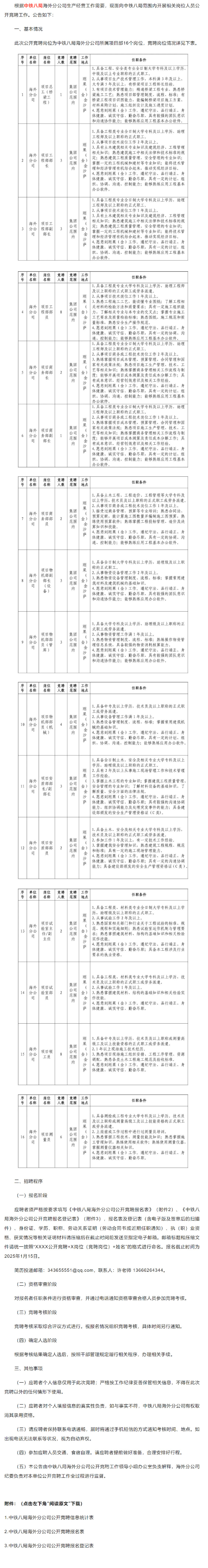 招聘[2024198]中铁八局海外分公司公开竞聘公告