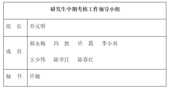 研究生中期考核工作领导小组