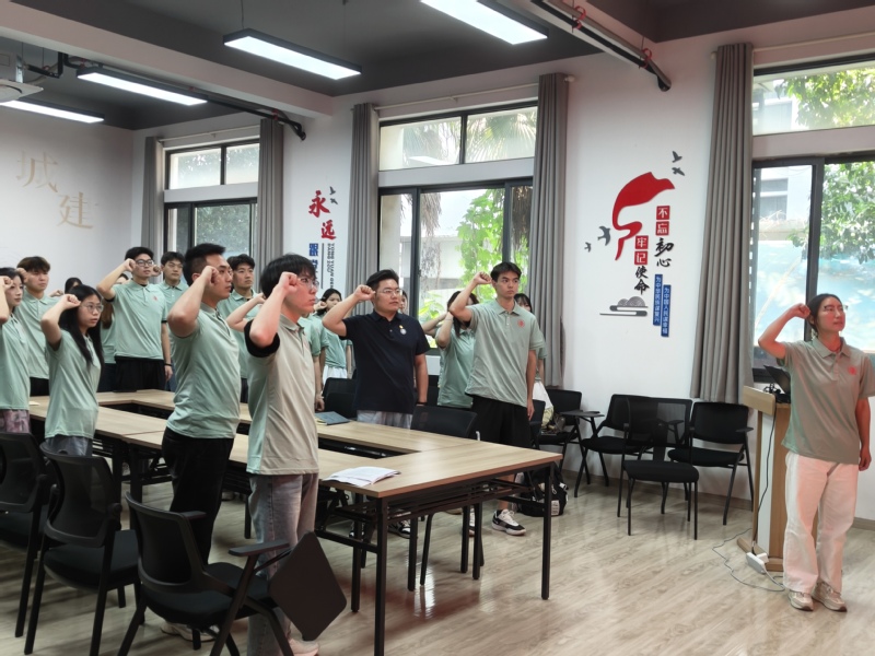 程成向六位实践小分队队长授予实践旗帜“以青春之名,担时代之责!…让青春在中国式现代化实践中绽放绚丽之光!”在领誓人杨光艳同学的带领下,全体实践队员紧握右拳,面向队旗,发出振聋发聩的青春誓言彰显了城建学子矢志深入基层、服务社会、挺膺担当的坚定信念与昂扬斗志。