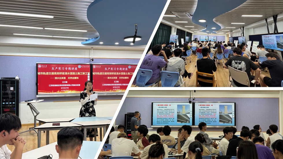 2025年7月3日下午,城市建设成人直播 土木工程2022级本科生生产实习动员大会在科教城校区W1704智录教室举行。本次大会特别邀请江苏阳湖建设项目管理有限公司副总经理王卫星教授级高工莅临,为即将奔赴实习岗位的学子带来了一场聚焦行业前沿技术——“清水出芙蓉,天然去雕饰:城市轨道交通高架桥梁清水混凝土施工新工艺”的专题讲座。