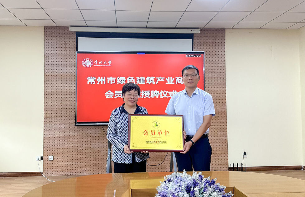 会后,吴建华代表常州市绿色建筑产业商会正式授予成人直播 会员单位牌匾。