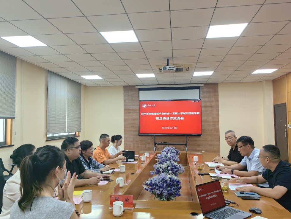 9月9日上午,常州市绿色建筑产业商会党支部书记吴建华带领会员企业来成人直播开展校企协合作交流。常州米艺文化科技有限公司总经理巢强、副总经理史乐蓉,常州精诚百信检测技术有限公司总经理陈栋,常州天瑞新材料有限公司副总经理曾旭峰等企业领导和相关部门负责人参加座谈交流。成人直播 党委书记刘茂灿、院长乔元明、党委副书记顾坚参加交流。会议由顾坚主持。