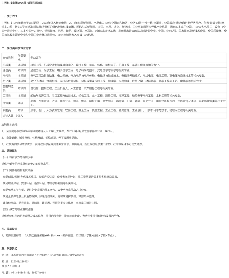 招聘宣讲会[2025006]中天科技集团2026届启航生校园招聘