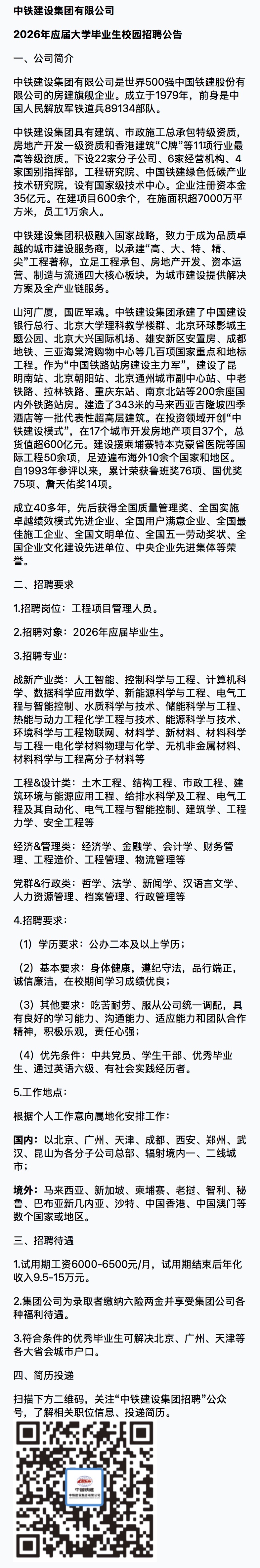 招聘宣讲会[2025015]中铁建设集团有限公司 2026年校园招聘