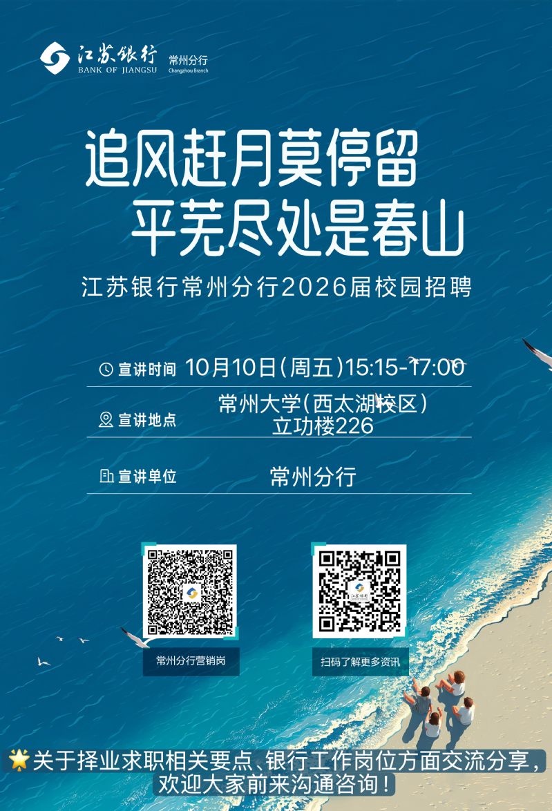 招聘宣讲会[2025021]江苏银行常州分行2026届校园招聘