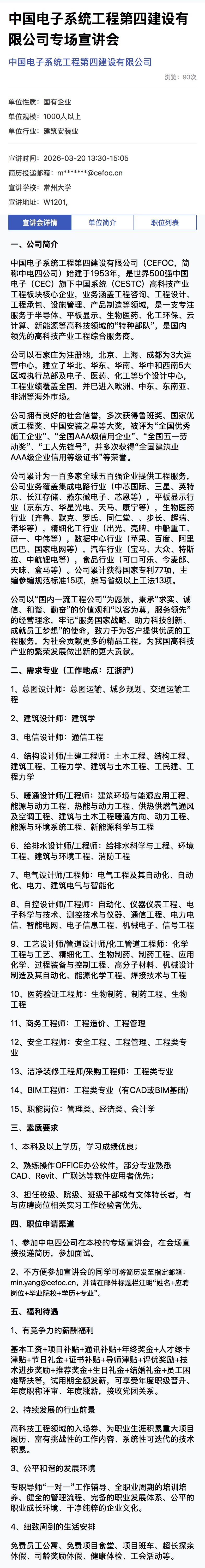 招聘宣讲会[2026021]中国电子系统工程第四建设有限公司宣讲会